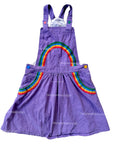 Brighten up your child's wardrobe with the Mini Boden Kids’ Corduroy Pinafore Rainbow Dress. This vibrant dress features a cheerful rainbow appliqué on soft purple corduroy, adding a fun and playful touch. Made from durable cotton corduroy, it ensures comfort and style for all-day wear. The dress is designed with adjustable shoulder straps and practical side buttons for easy dressing. It's perfect for layering over a t-shirt or blouse, making it ideal for both casual outings and special occasions. Plus, it is machine washable for easy care.