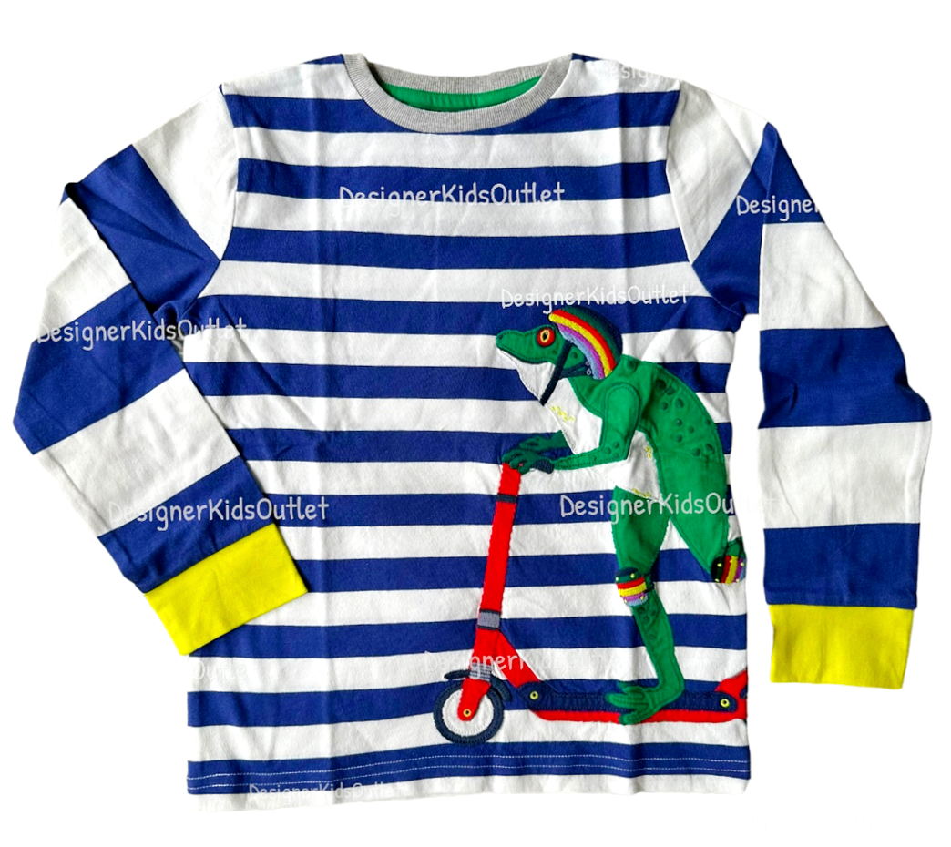 Mini Boden Boys Stripe Animal Appliqué T-shirt College Navy/Ivory Frog Scooter