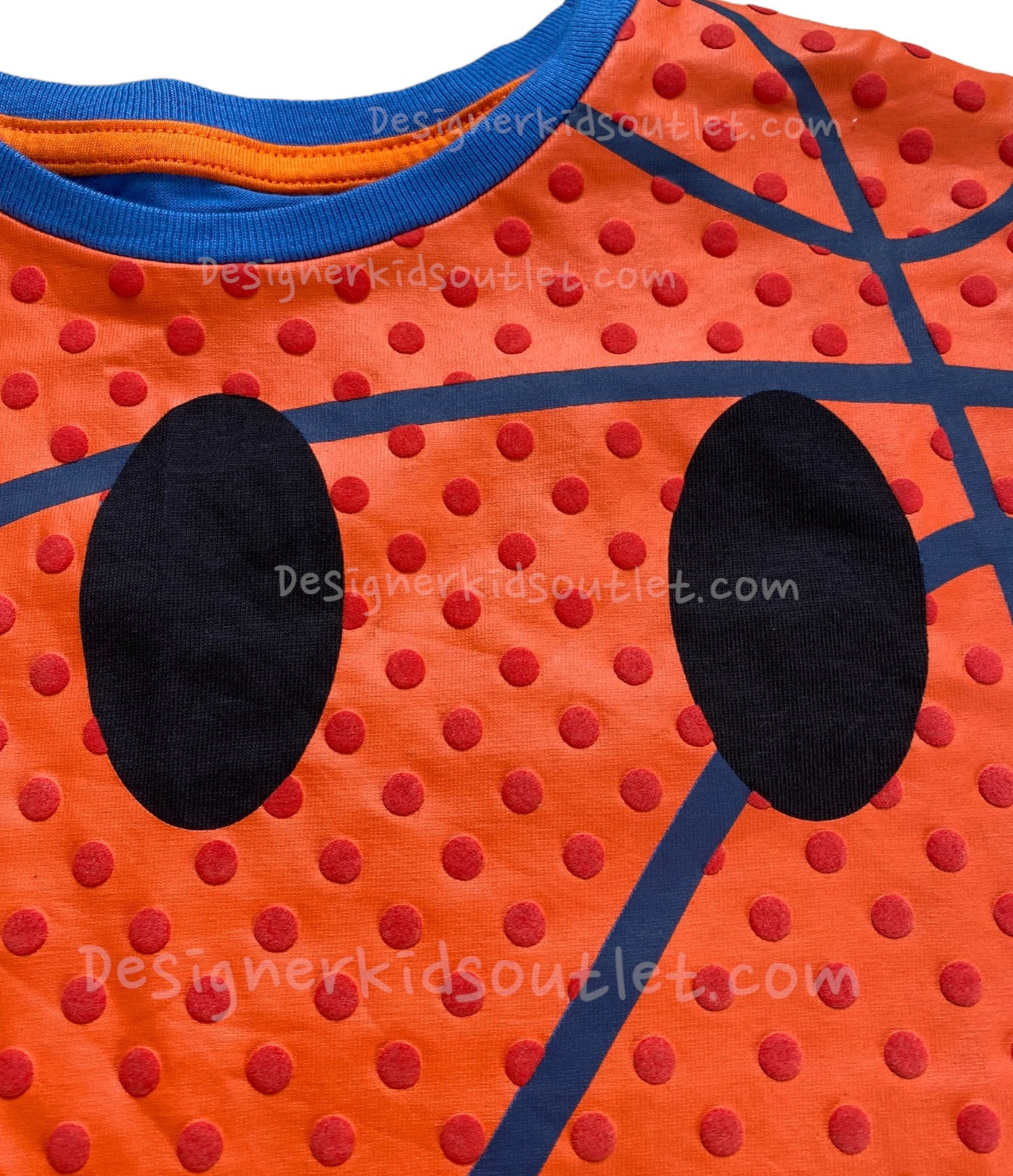 Mini Boden T-Shirt Blue & Orange Flock Smiley Face Basketball