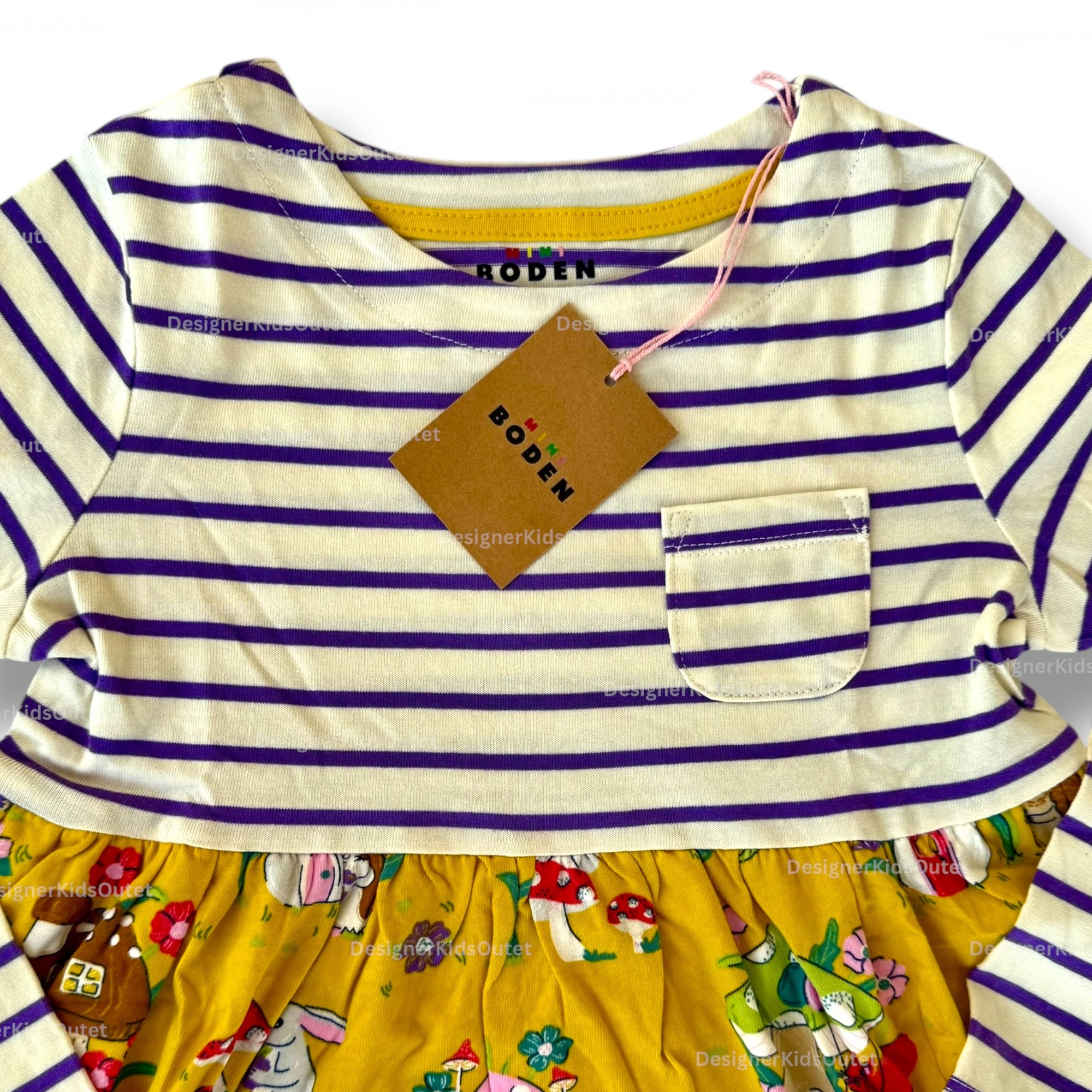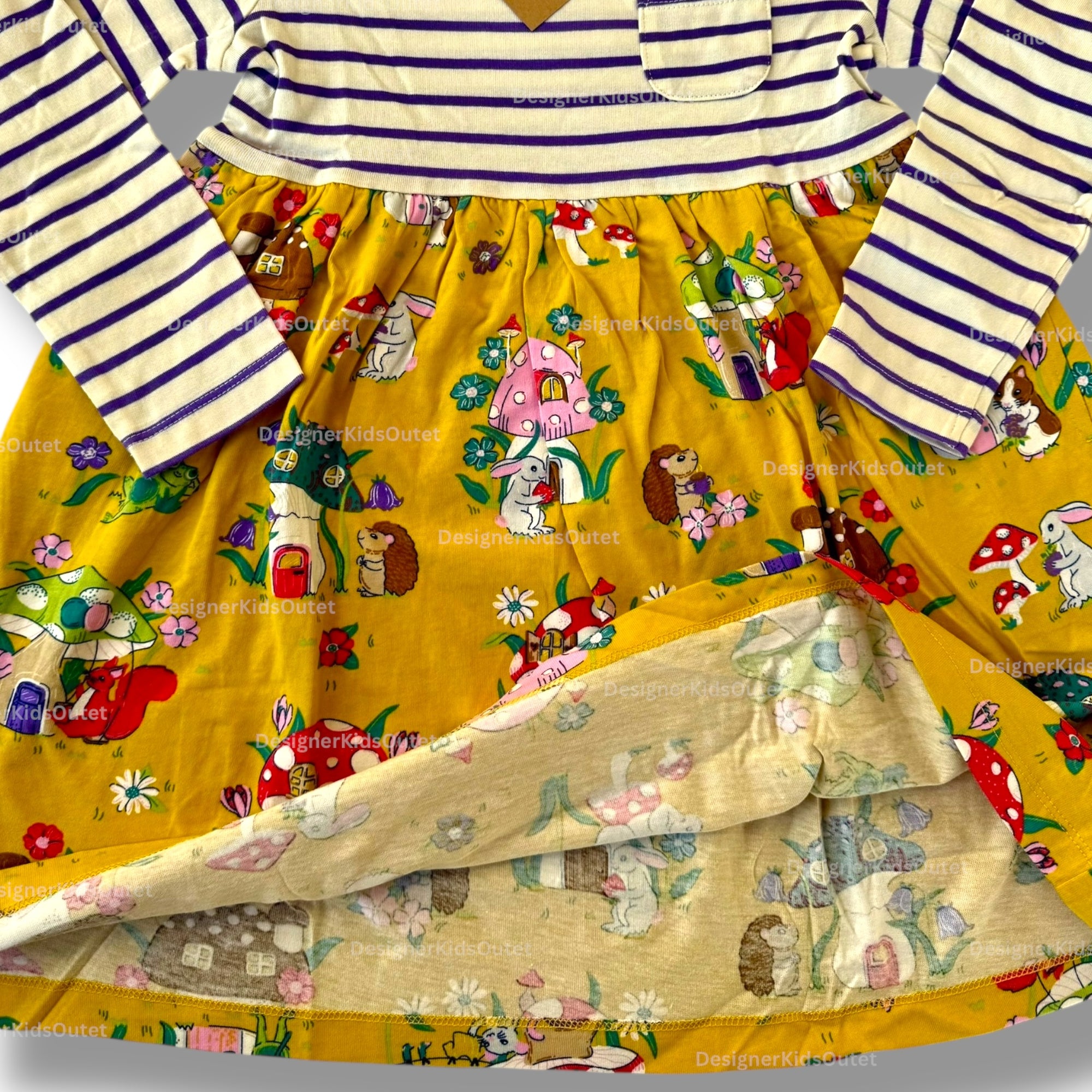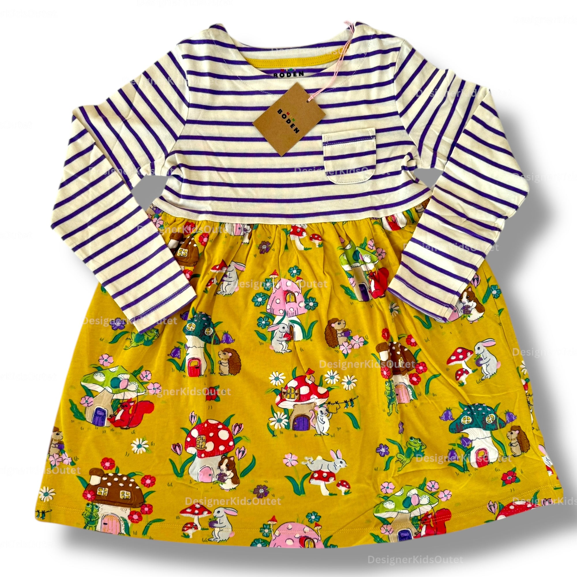 Mini Boden Girls Long Sleeve Autumn Mushroom Dress – Mustard & Royal Purple