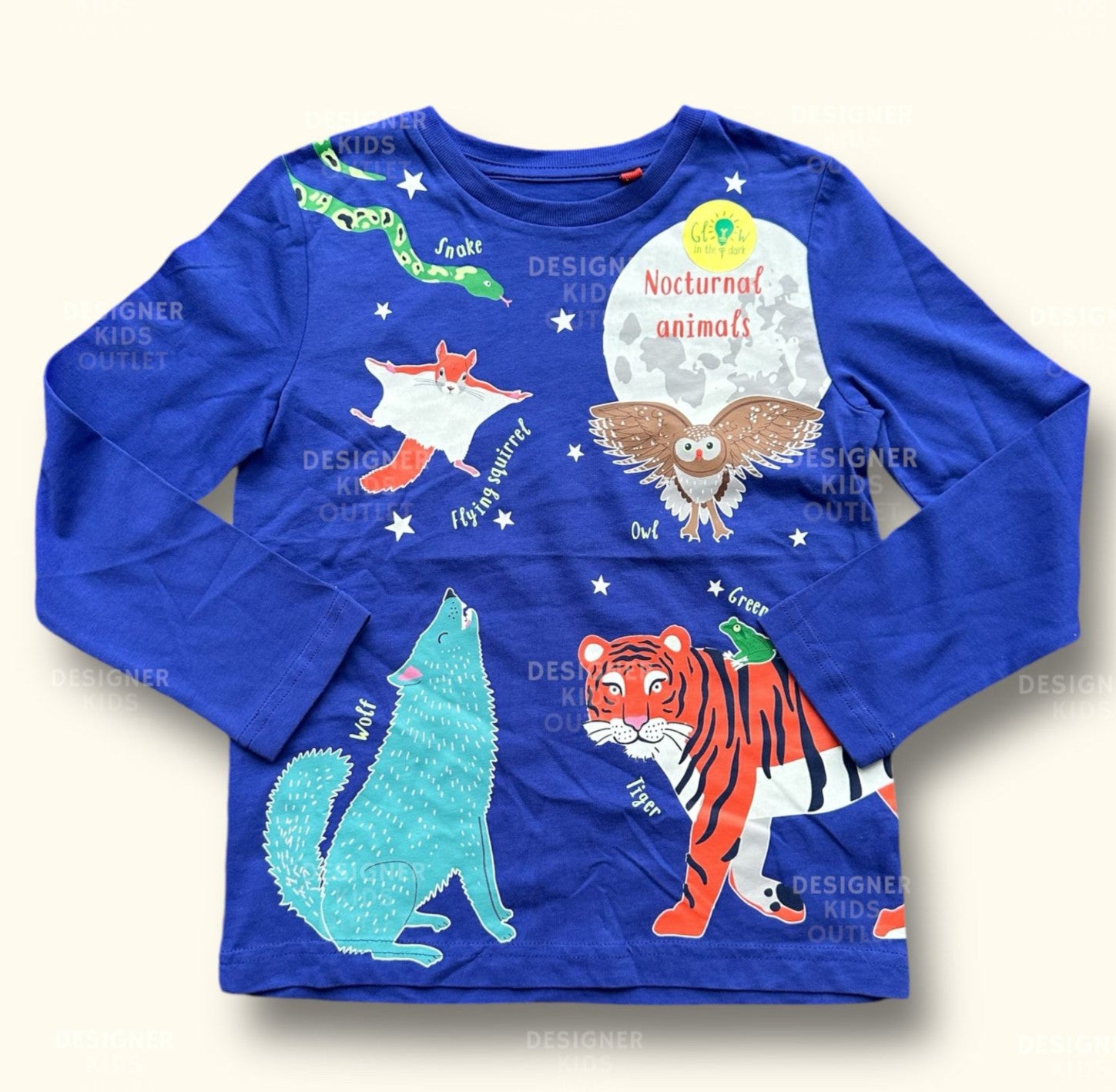 Mini Boden Boys Big Appliqué Striped T-shirt in Moroccan Blue with rabbit design