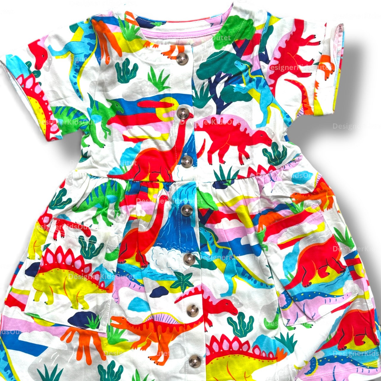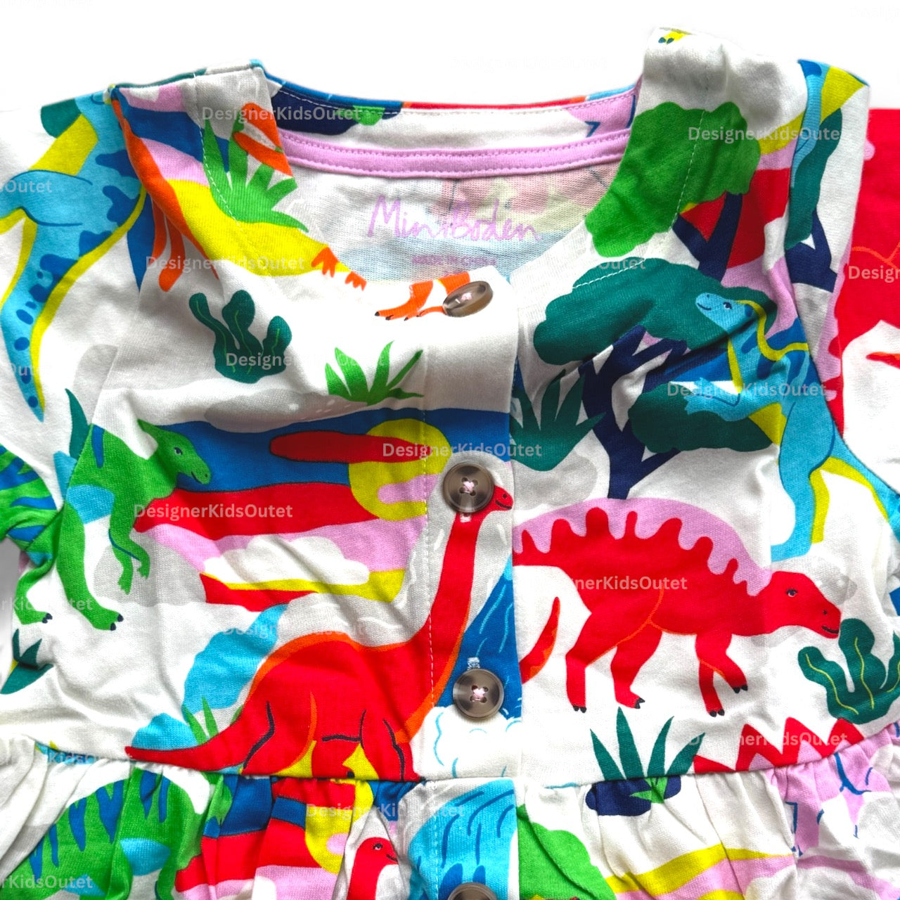 Mini Boden Girls Button Down Jersey Dress - Ivory Dinosaur Sunset